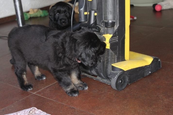 4.Woche/ Die H-Kinder lernen nun aus Schüsseln zu essen und sie untersuchen schon ganz aktiv ihre Umwelt und bellen sich auch ab und zu an. Die großen und kleinen Geschäfte werden jetzt schon oft vor die Tür gemacht, sodass Wäsche gespart werden kann. Die kleinen Spieleinlagen bringen uns täglich zum Schmunzeln.